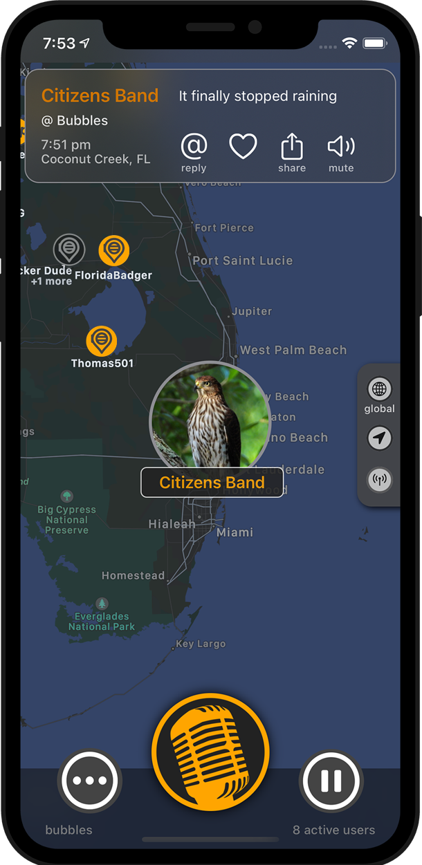 Tap to speak to the world. Get notified the instant someone responds.