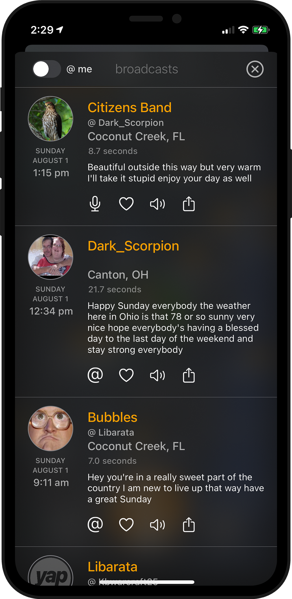 Talk and listen in real-time or browse + listen to past broadcasts.